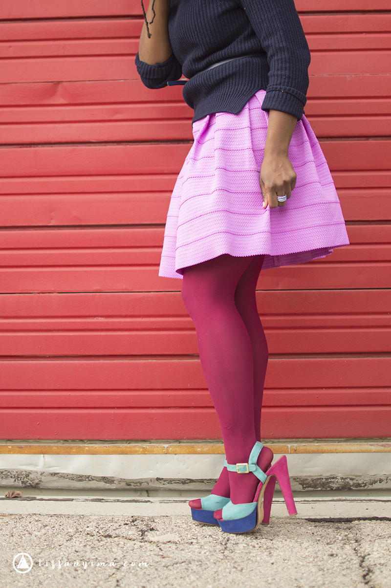 Look at happens when I tip the balance of the color saturation. Now when you look at the outfit, you are drawn directly to the skirt instead of all the colors working together as one unified look. When you look at the picture below, you take it in as a whole.